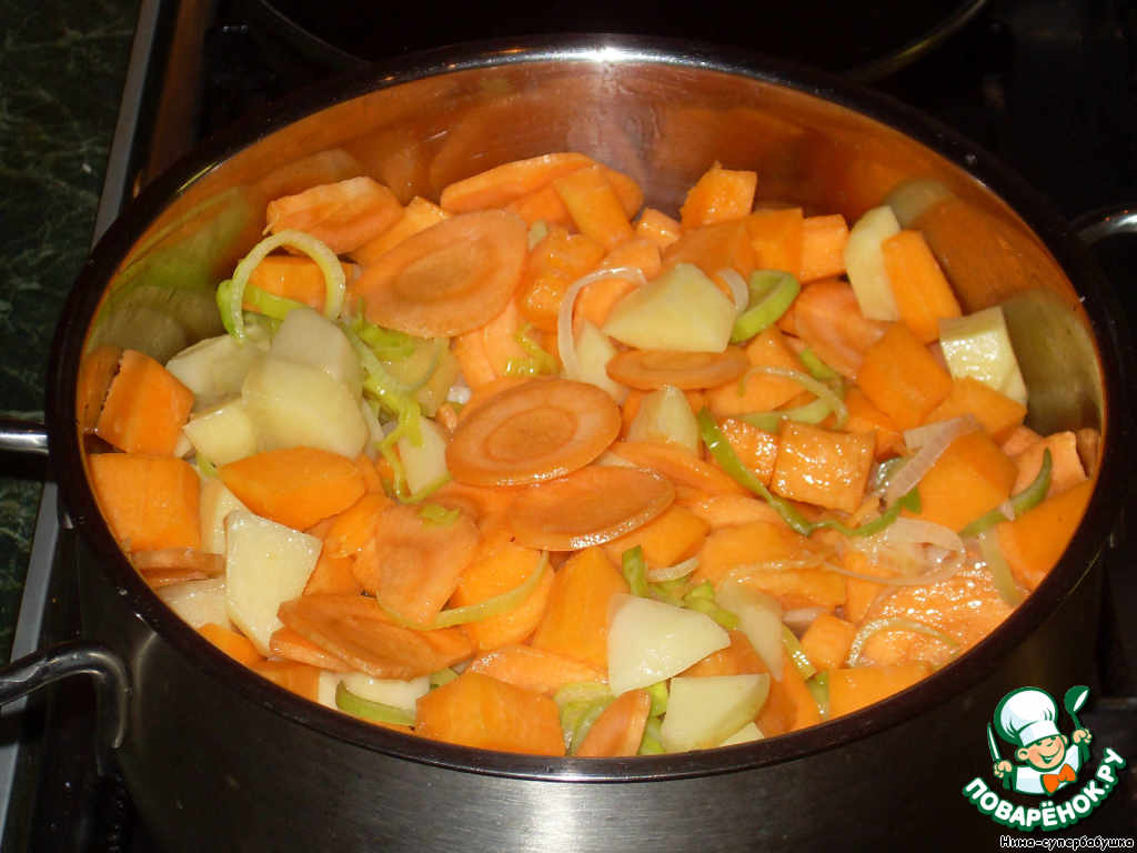 - Лук-порей (или 2 репчатых луковицы) — 1 шт