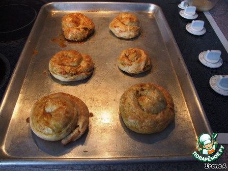 Выкладываем наши улиточки на смазанный противень, смазываем взбитым яйцом, сладкие можно также присыпать сверху сахаром.