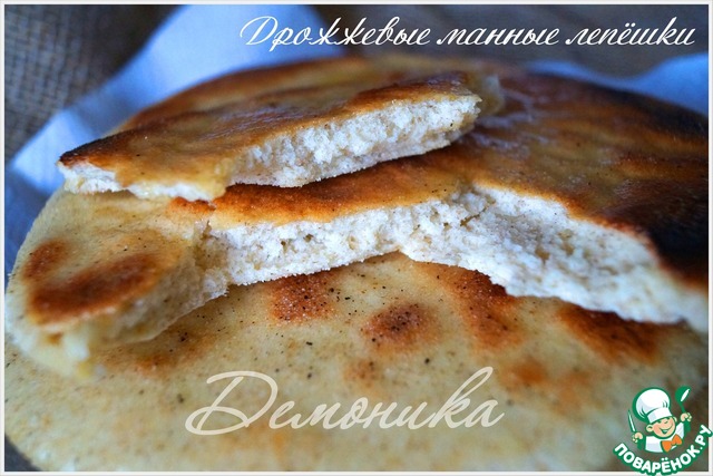 Рецепт «Лепешки из манки, приготовленные на сковороде»: