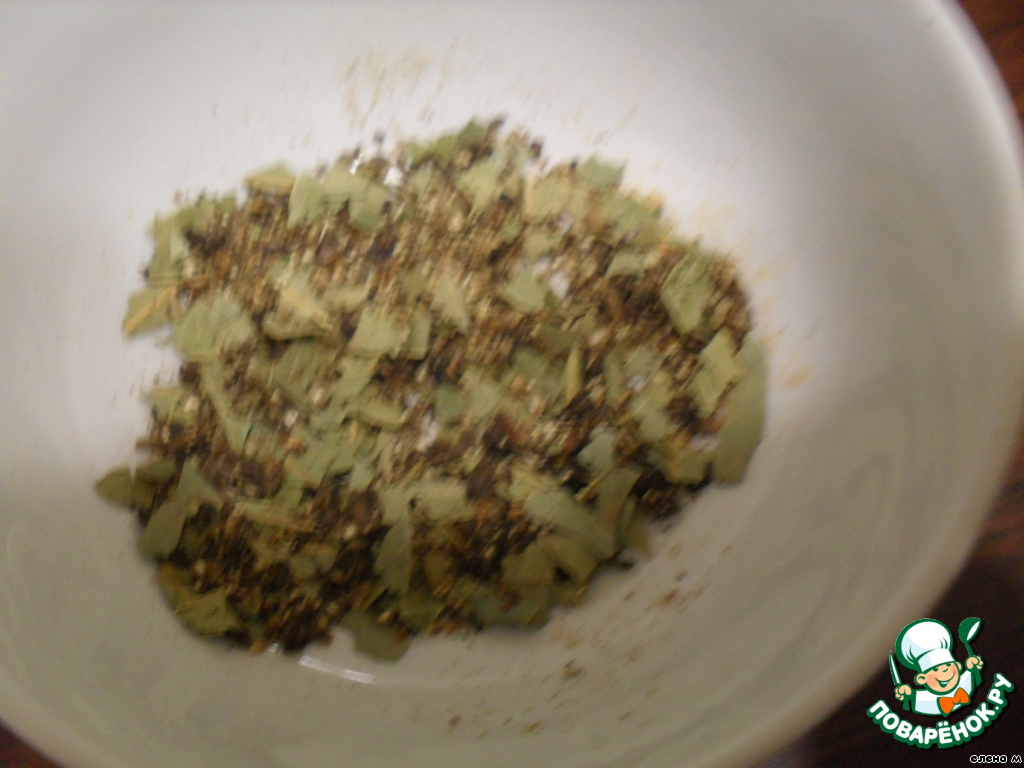 Специи растереть в ступке, но не очень мелко.