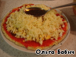Первый блинчик смазать перемолотым болгарским перчиком.