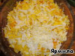 Следующим слоем трем вареную морковь, потом яйца и между слоями добавляем майонез.