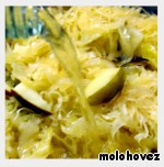 Влить шампанское, размешать и оставить тушиться на маленьком огне 30 минут, периодически помешивая.