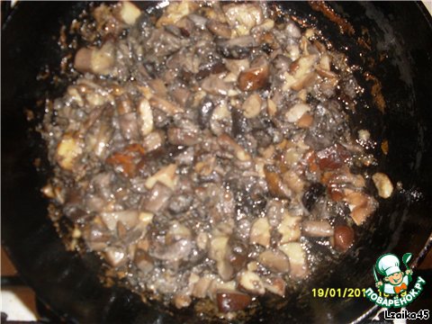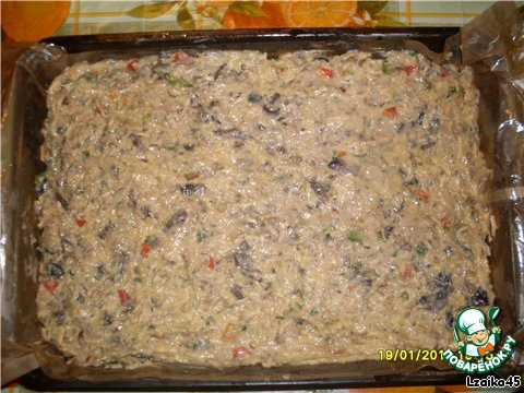 Таня, начинка готовится, а потом выкладывается в тесто и ВСЕ перемешивается до однородной массы, результат мне понравился, единственное замечание от себя тесто надо солить по вкусу (Я всегда все пробую... даже тесто), вот мне показалось соли достаточно, потом испугалась, что все "уварится" и будет солено, а получилось в самый раз (Перец не добавляла).