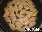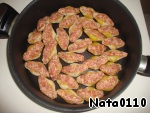 И начиняем их фаршем. Укладываем в глубокую, смазанную маслом форму.