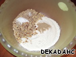 Смешиваем кардамон, разрыхлитель, соль, муку и фундук (2 ст.л. орехов оставьте для посыпки).