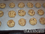 Из теста катаем шарики. Посыпаем орехами и выкладываем на пергаментную бумагу. Выпекаем в духовке нагретой до 180 градусов 20 минут.
