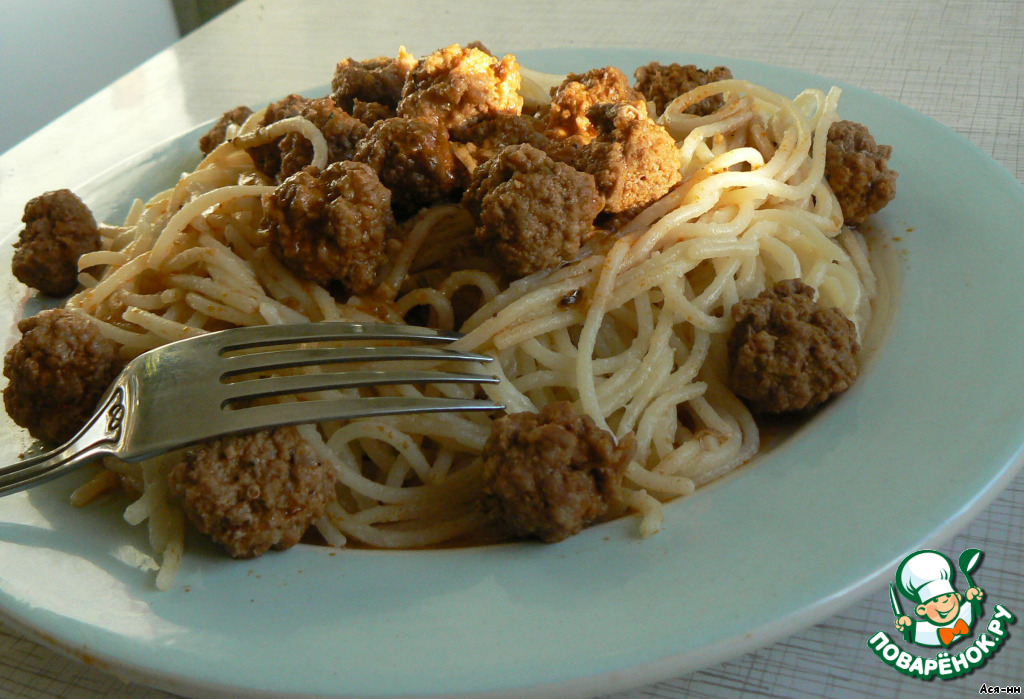 Рецепт «Спагетти с тефтельками под острым томатным соусом»: