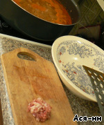 Когда, практически, весь фарш переправлен в соус, вода как раз почти закипела...