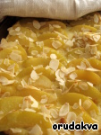 Заливаем сливочно-яичной массой, посыпаем измельченным и обжаренным миндалем.
