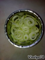 Лук почистить и со слезами порезать кольцами.