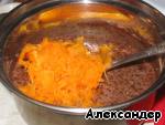 Вылить в миску стакан подогретой сыворотки. Ввести соду. Добавить сахар, мед, какао, растительное масло и тертую тыкву.