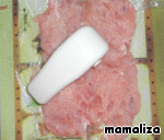 Большие филе хорошо отбить в полиэтиленовом пакете. Я дополнительно обработала их роликовым ножом.
