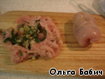Раскрыть куриную грудку, отбить, замариновать.