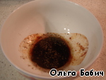 Для соуса: смешать оливковое масло, соевый соус, специи, соль, чеснок, пропущенный через пресс, сок лимона.