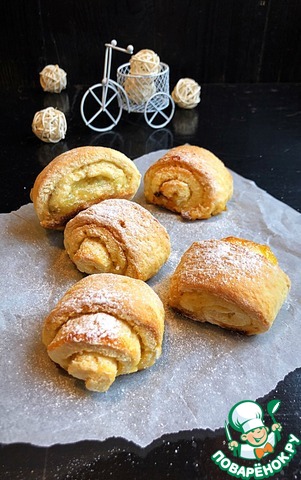 Края "турбинок" обмакнуть в крахмал или муку, уложить их на противень, застеленный бумагой для выпечки.