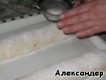 Теперь представьте, что надо плотно свернуть тесто в рулет. Начинайте с длинной стороны, от себя. Вначале вы оттягиваете тесто на себя, потом заворачиваете край в противоположном направлении и эту завертку плотно прижимаете ребром ладони (выступом у большого пальца или как вам удобно).