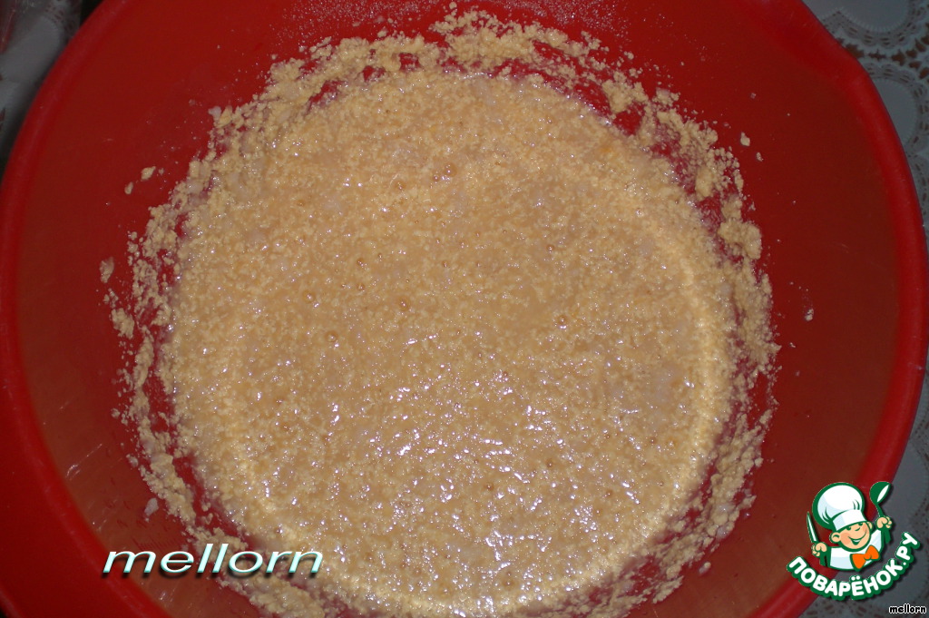 Сварить кашу из молока и манной крупы. Дать остыть до комнатной температуры, периодически перемешивая. Всыпать дрожжи и оставить на 20-30 мин.