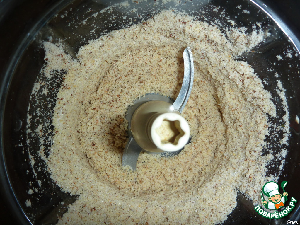 Толченые сухари просеять через сито. Орехи (миндаль очистить от кожуры) мелко нарубить (я делала это в блендере), поджарить в духовом шкафу до светло-коричневого цвета и растереть с 2 столовыми ложками сахара.