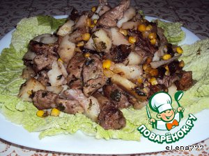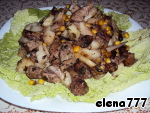 Готовое жаркое выложить на листья салата, разрезав верх рукава ножом.