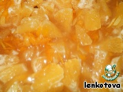 Залить теплым сиропом и дать постоять, пока апельсины не пустят сок.