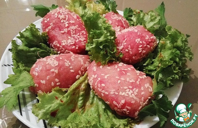 Присыпаем клубничку кунжутом и укладываем на блюдо.