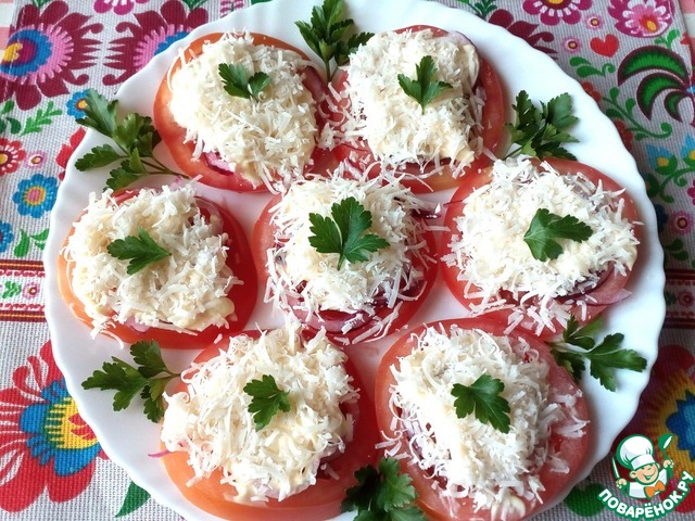Ингредиенты для «Простая закуска из помидоров с сыром»: