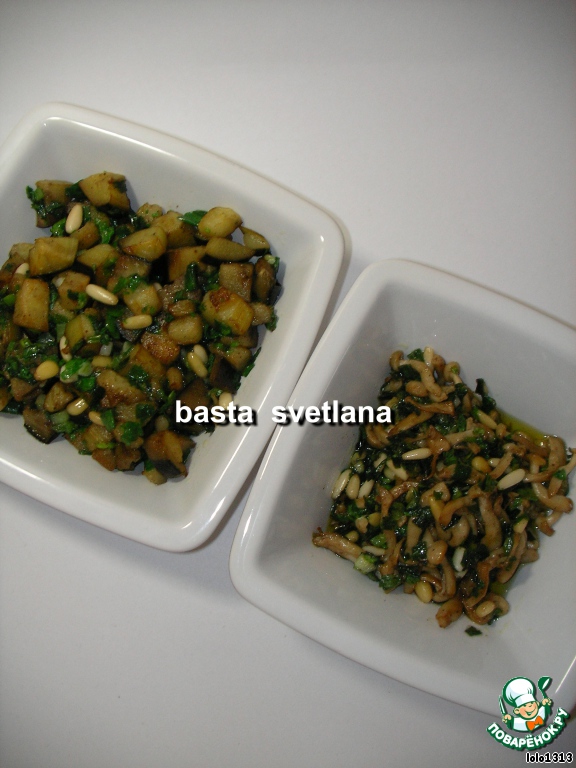 Баклажанная начинка: обжарить баклажаны порезанные на кубики в оливковом масле...