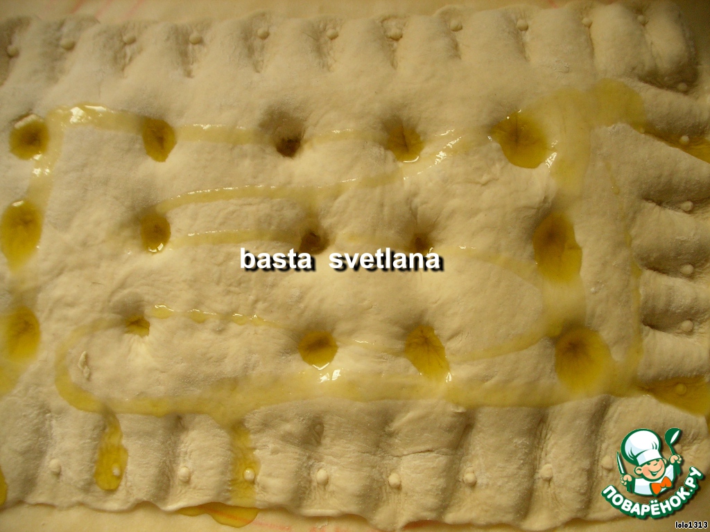 Сверxу на лепёшку нанести немного оливкового масла ...
