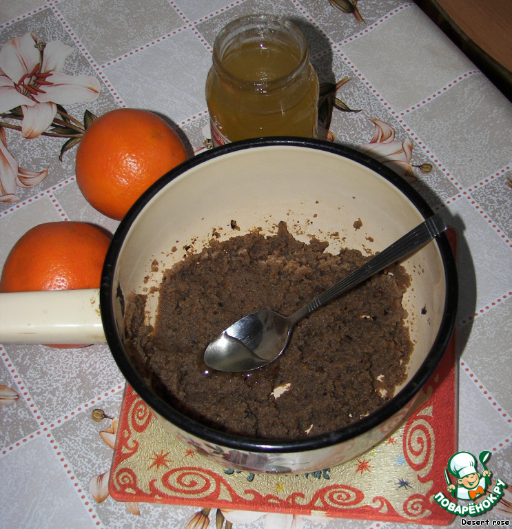 Хлебную массу поставить в эмалированной посуде на маленький огонь, прогреть, не доводя до кипения, потомить минут 5. Затем добавить мед или сахар по вкусу, молотую корицу и/или молотую гвоздику или имбирь, лимонную или апельсиновую цедру. Перемешать и прогреть еще раз. Хлебная масса должна превратиться в однородную, при желании, можно протереть ее через сито. Но я просто тщательно растерла ложкой.
