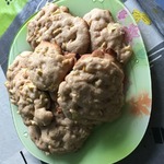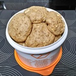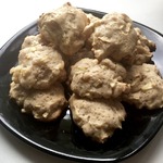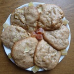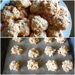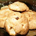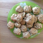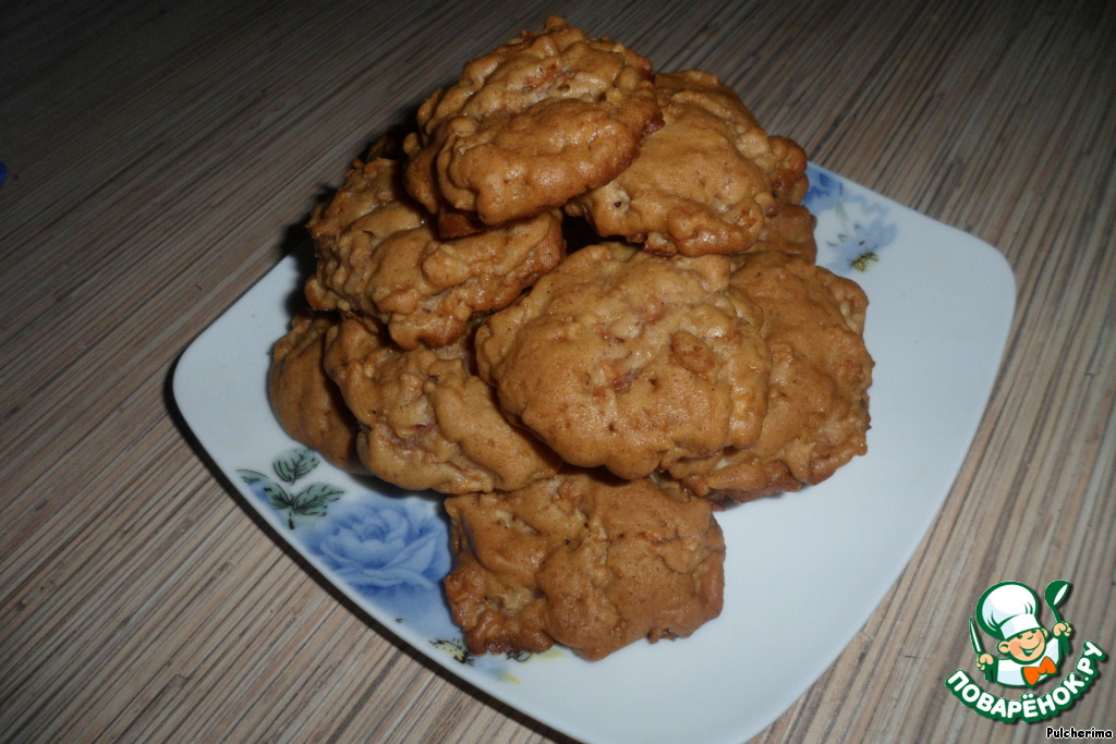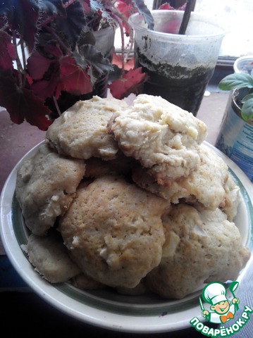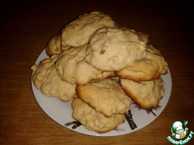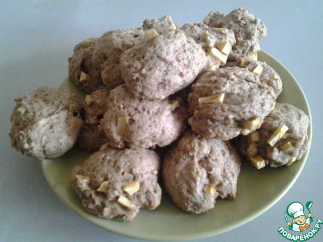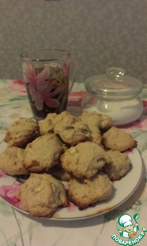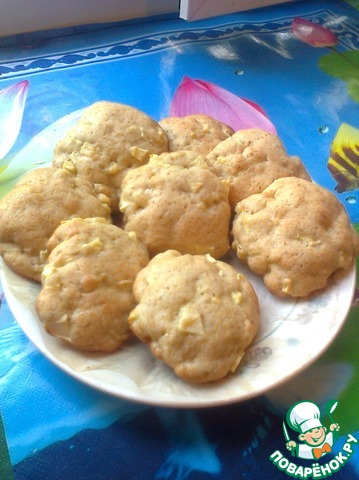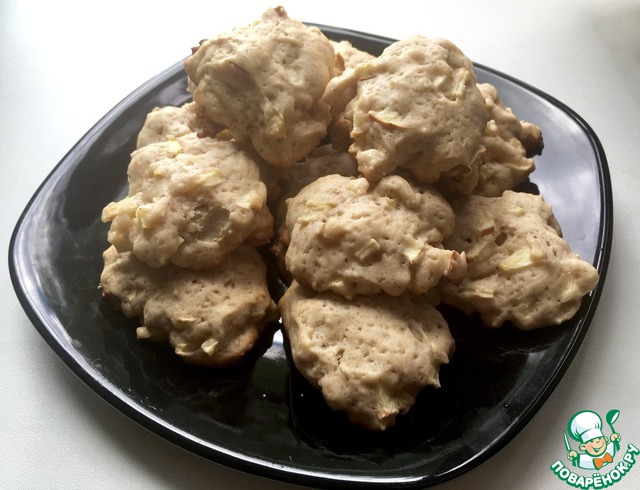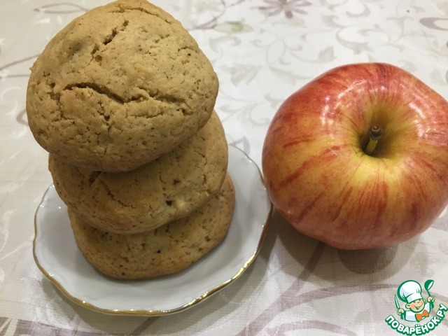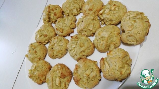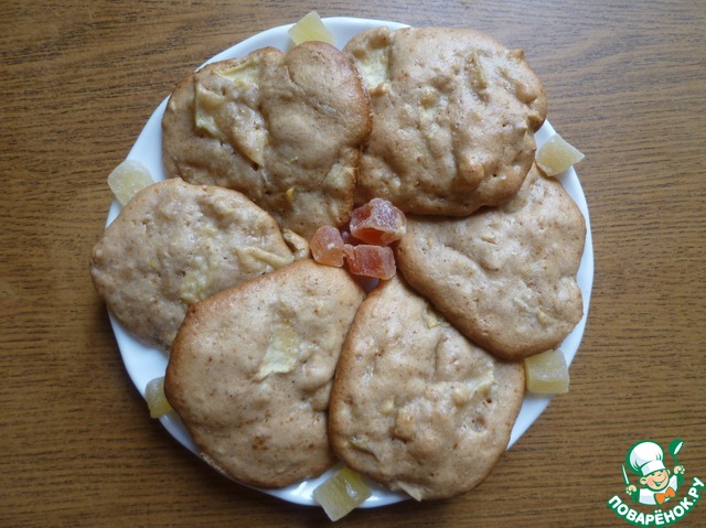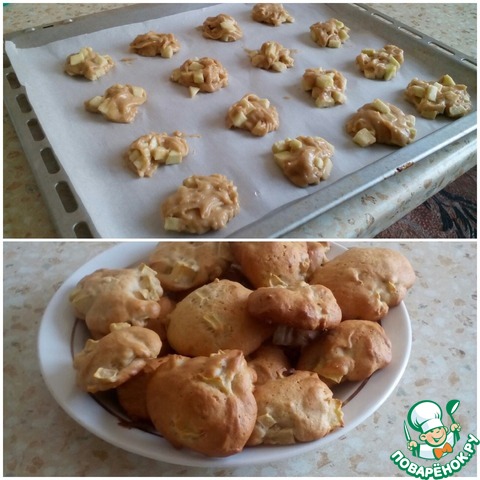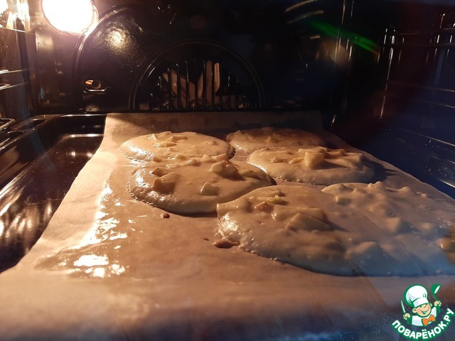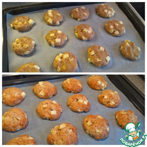 6 минут замес теста, 15 мин на выпечку, не растекалось, получилось 12 печенек диаметром 6 см, яблок не было - делала с изюмом