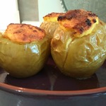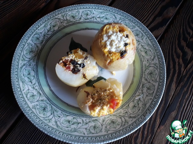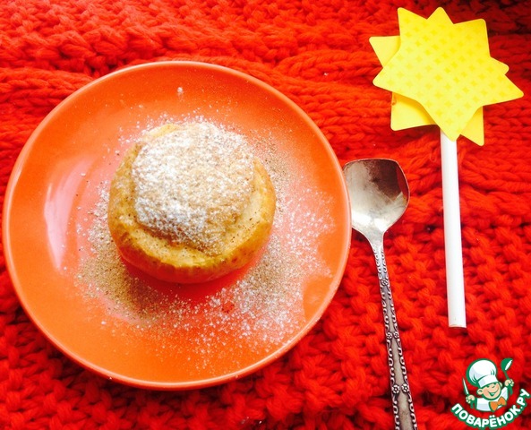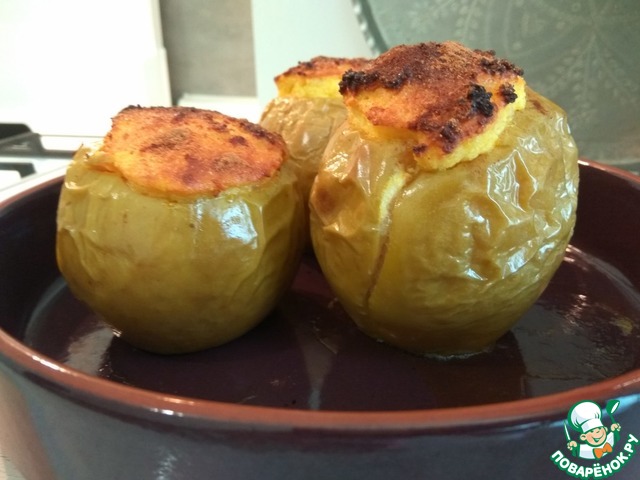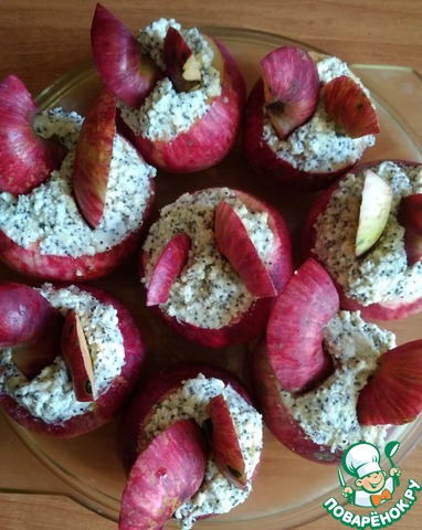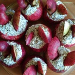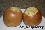 6. В яблоки ложкой закладываем начинку и в духовку/микроволновку. Я предпочитаю микроволновку, на небольшой мощности яблоки хорошо пропекаются и не "лопнут" (160-180) 10 минут.