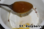 4. Добавить творог, яичный желток, ванилин и столовую ложку меда, все перемешать