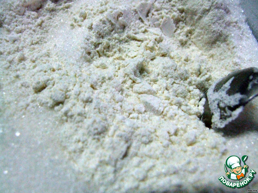 • Сначала займемся тестом... муку просеять в миску, добавить сахар, соль, разрыхлитель.