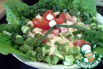 На сёмгу - кусочки салатных листьев и немного майонеза.