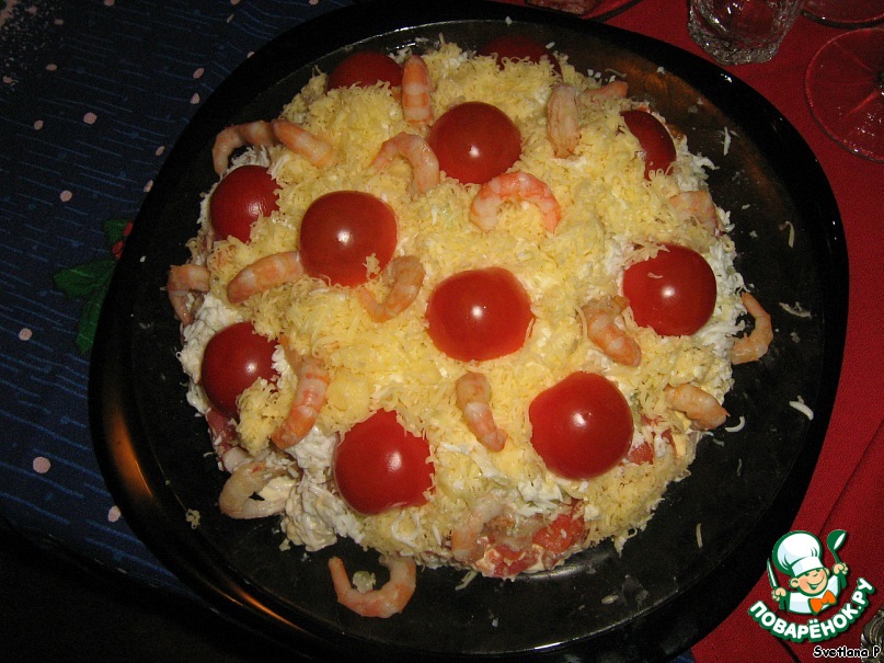 [+5]Приготовила эту красоту (с небольшими изменениями) на день рождения, очень понравился салатик - вкусный, нежный, красивый! Благодарю!