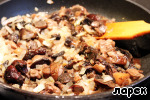 Прежде всего, поджарьте на растительном масле грибы с луком. Приправьте солью, перцем, мускатным орехом.