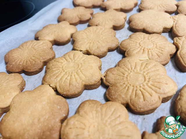 Собрать тесто оставшееся от "вырезания", раскатать и сделать печенье снова (пока не израсходуется всe тесто).