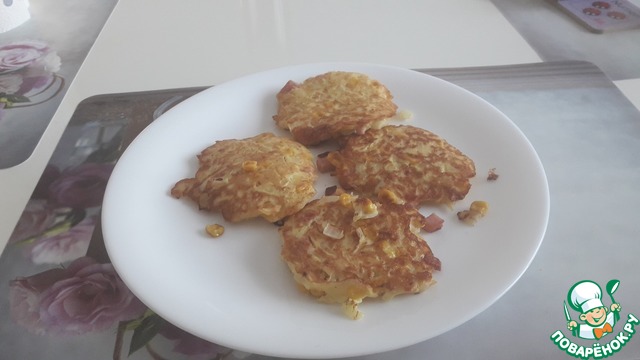 Быстро, просто и вкусно! Отличный перекус на завтрак! Рецепт этого блюда был размещен на сайте в 2009 году пользователем mavlira под названием "Кукурузные лепешки" и иллюстрирован мной в рамках акции "Раскраски"