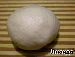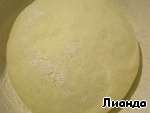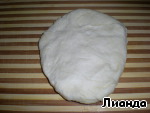 Подошедшее тесто разделить на 10 равных частей. Раскатать каждую в лепешку. Я просто распределила тесто на дощечке руками.