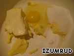 Смешать сахар, разрыхлитель, соль, масло, яйцо; взбить.