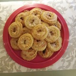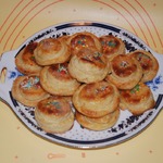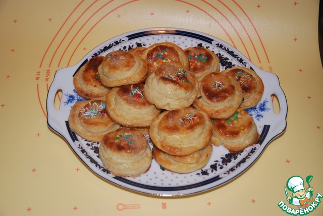 Охлажденное тесто раскатать в пласт толщиной 1 см, вырезать из него круглыми формами разных диаметров лепешки двух размеров.