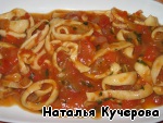 Опять я с простым и быстрым блюдом, но очень вкусным. Вкусненькие кальмарчики с помидорчиками и вином. Попробуйте, не пожалеете!
