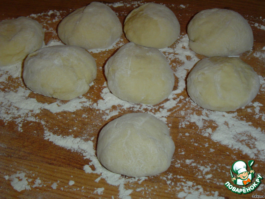 Тесто делим на 15-16 частей и каждую раскатываем тонко.