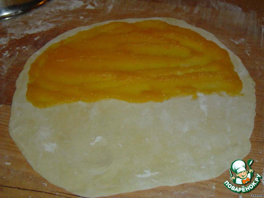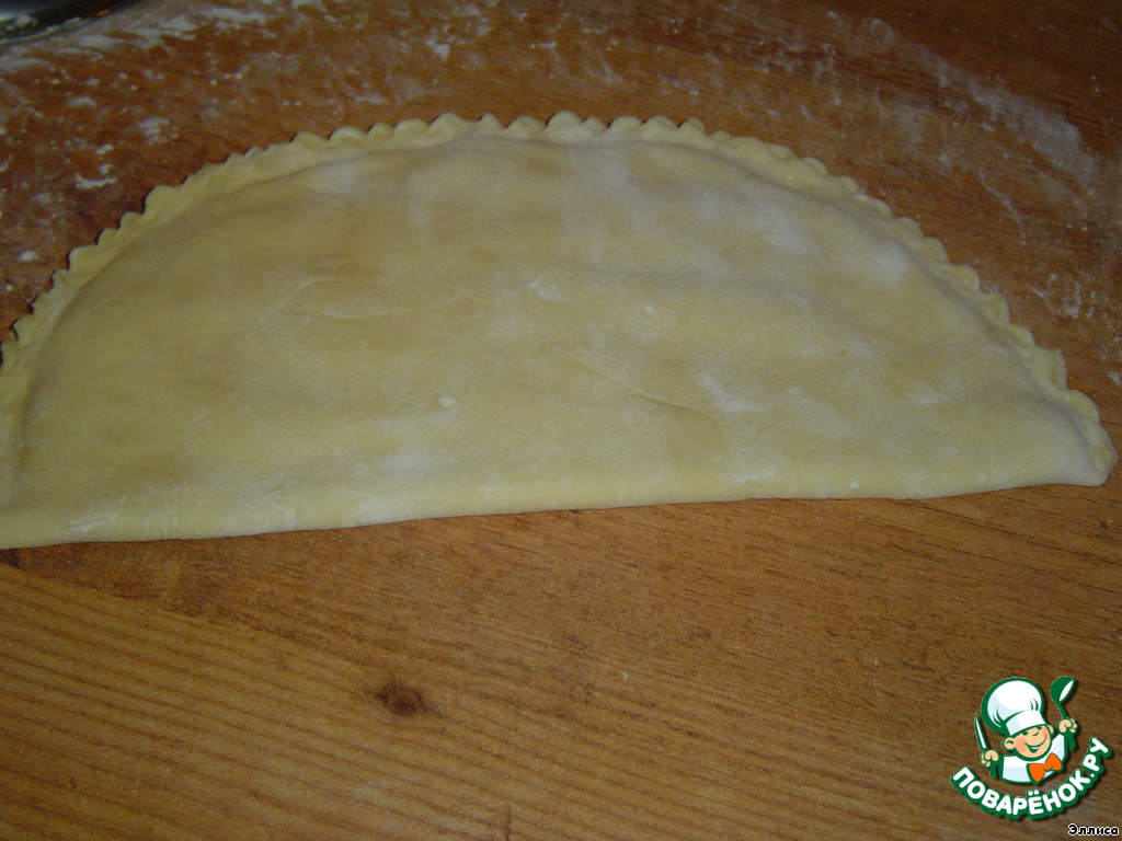 Hакрываем другой, защипываем края, придавая форму полумесяца.
