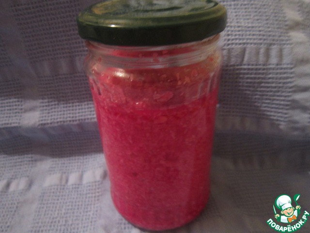 [+5]Делала этот соус уже два раза. Корешки хрена мне попадались до 130 г (уже после чистки). Мне маловато уксуса (делаю со столовым 9 % ), поэтому я еще ложечку добавляю. Свеклу, уже после натирания на мелкой терке, можно добавить в чашу с хреном и перебить, чтобы она не отличалась по длине от кусочков хрена, и тогда масса будет более однородная.