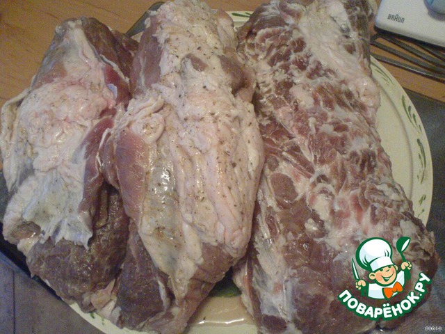 Берем большой кусок мяса, свиного желательно, можно, конечно, телятину взять, но только юных лет, иначе с говядиной старческого возраста у вас не получится того, о чем пишу, впрочем, как желаете. У меня была шея и "задняя" часть на местном наречии - шинка.
