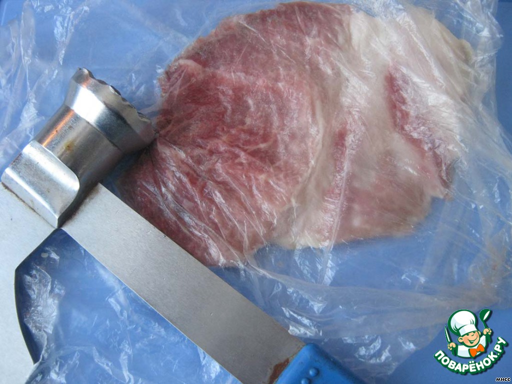 Мясо нарезаем, как на отбивные. Я брала шею.