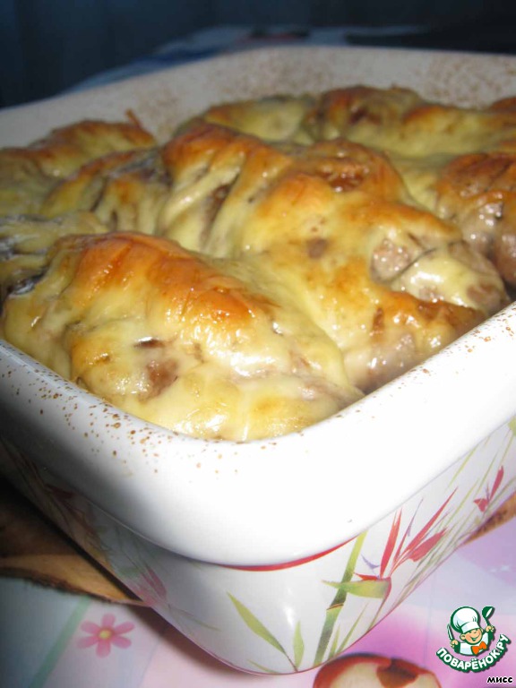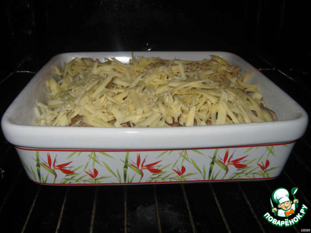 Сверху посыпаем сыром и ставим в духовку на 180 градусов на 40 минут.