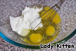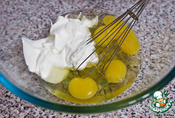 Взбить яйца со сметаной.